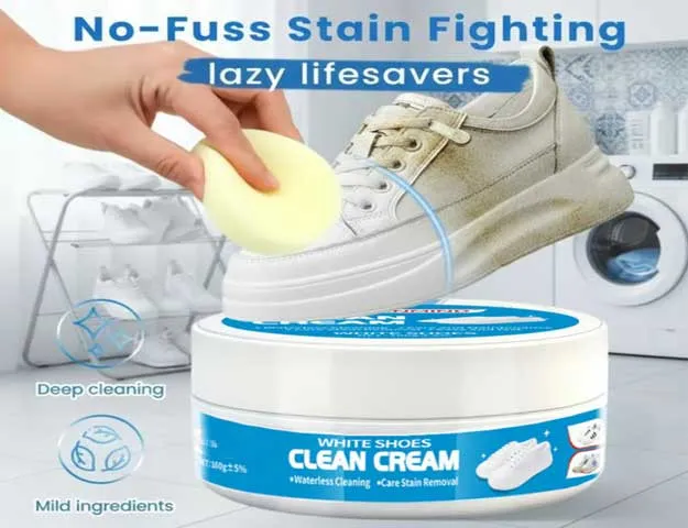 Τα λευκά παπούτσια χάνουν γρήγορα τη φρέσκια εμφάνισή τους λόγω λεκέδων, σκόνης και κιτρινίσματος. Αυτή η κρέμα καθαρισμού αφαιρεί αποτελεσματικά τη βρωμιά και επαναφέρει το καθαρό λευκό χρώμα.